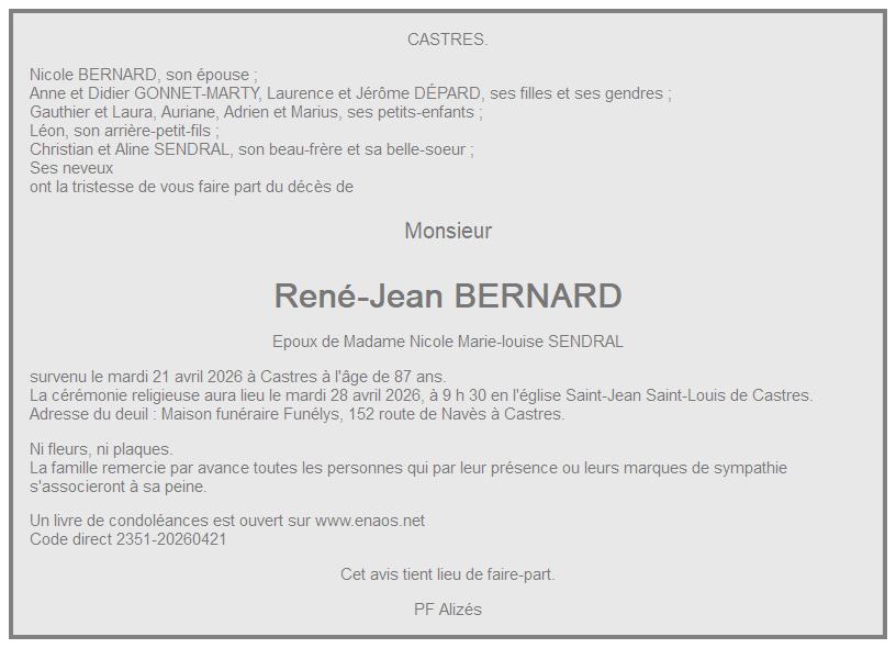 crématorium de Sémalens le mardi 28 avril à 11 heures 30